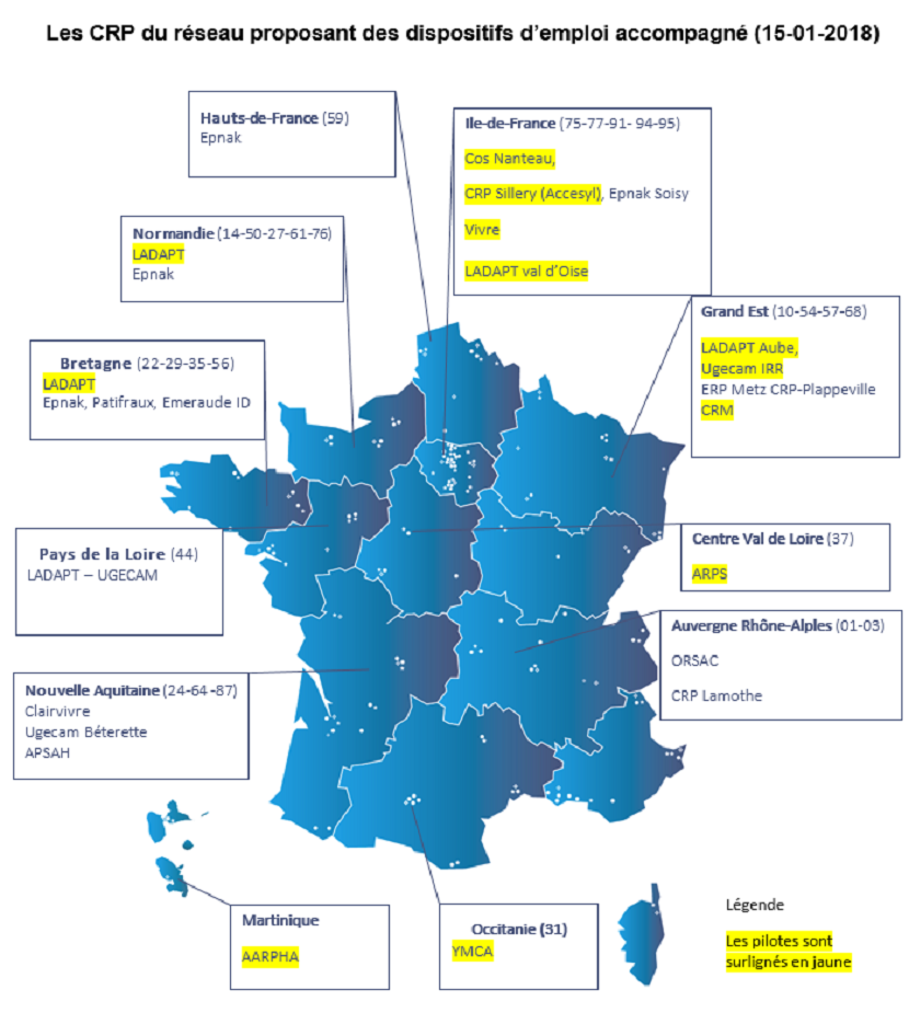 Votre CRP a été retenu par l’ARS sur l’emploi accompagné mais il ne figure pas sur la carte? Merci de le signaler à isabelle.merian [at] fagerh.fr.